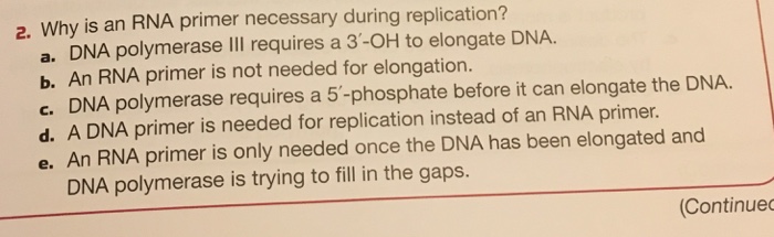 Solved Why Is An Rna Primer Necessary For Dna Replication Chegg Com